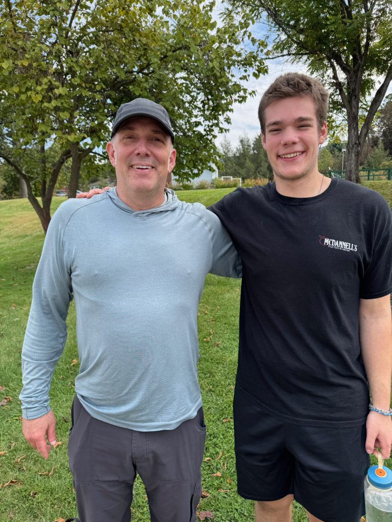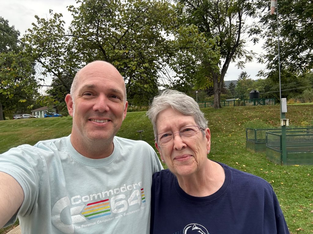 He managed to connect with Ben, our grandson, who started at Penn State this fall. They hiked up to a nearby fire tower and then stopped to visit with us on the way back. Hugs all around!