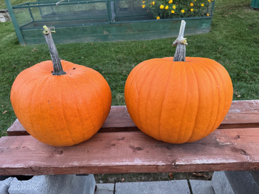 The pumpkins are turning orange and I’m surprised how many there are in the patch. Of course, we won’t know until we actually pull them out of the patch if roaming critters have taken bites out of them.