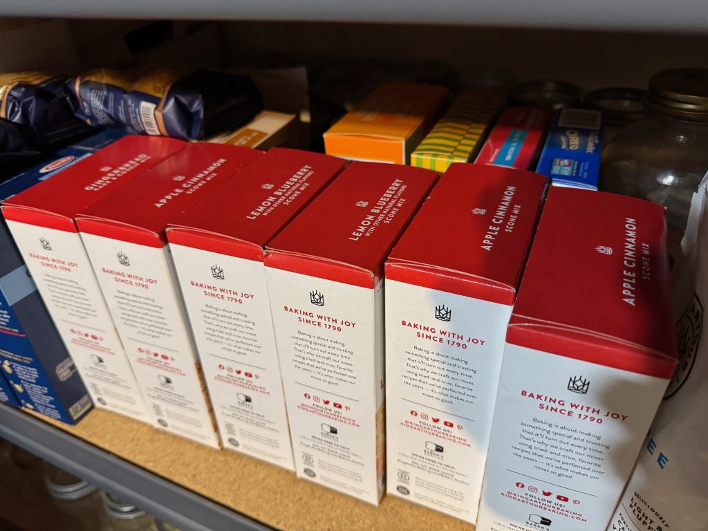 My contributions seem to be the chicken corn soup and scones. The soup was easy, but I tackled the scones last year without knowing much about making them. I simplified the process by buying boxed mixes for scones from King Arthur Flour Company…online. You can read about the learning curve I went through to make a ton of scones at https://marykisner.com/making-scones/. At that time, I didn’t realize my oven was not very accurate with preheating so the whole process was quite an accomplishment. I also finally discovered silicone scone baking pans and what a difference they made! I can cool the scones right in the pan and pop them out after they cool and firm up.
