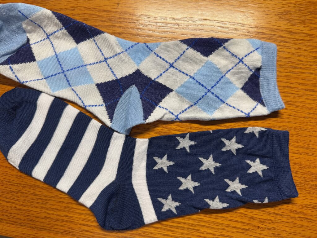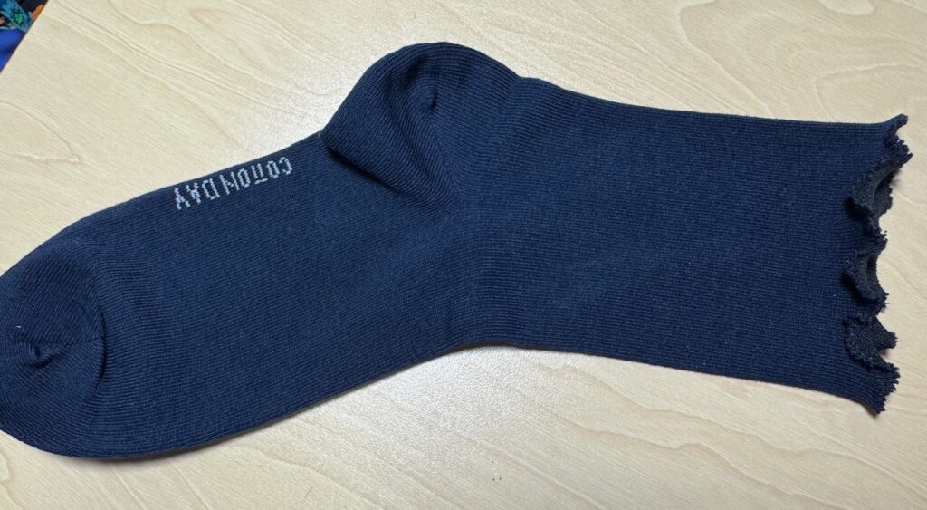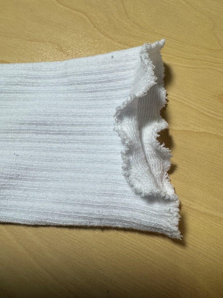 It’s the little things that can be annoying! I have yet to buy a new pair of socks that are comfortable right out of the package! I have a whole drawer full of socks that are almost OK. Since I don’t like tight socks…at my toes or my ankle…I try to buy a bigger size. However, then my feet slide around in my shoes. If I buy the correct size, the top of the sock usually has a ‘hem’ or several strings of tight elastic that drives me nuts. Here are two socks that show the tight hem at the top. I have yet to fix these so I can wear them.