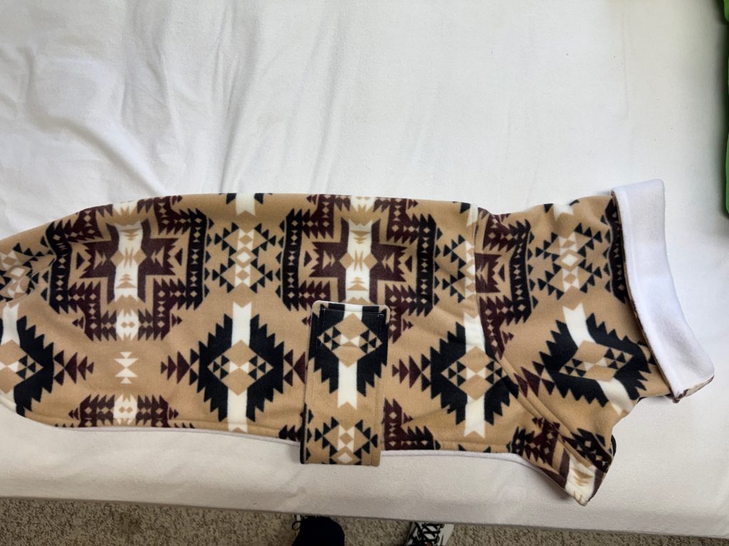 So, while I’m watching my charts and sticking to my diet I’m finding I really need to stay busy! Luckily, I’ve got lots of fleece and have been cranking out coats for my beloved greyhounds! Here are some I just finished!