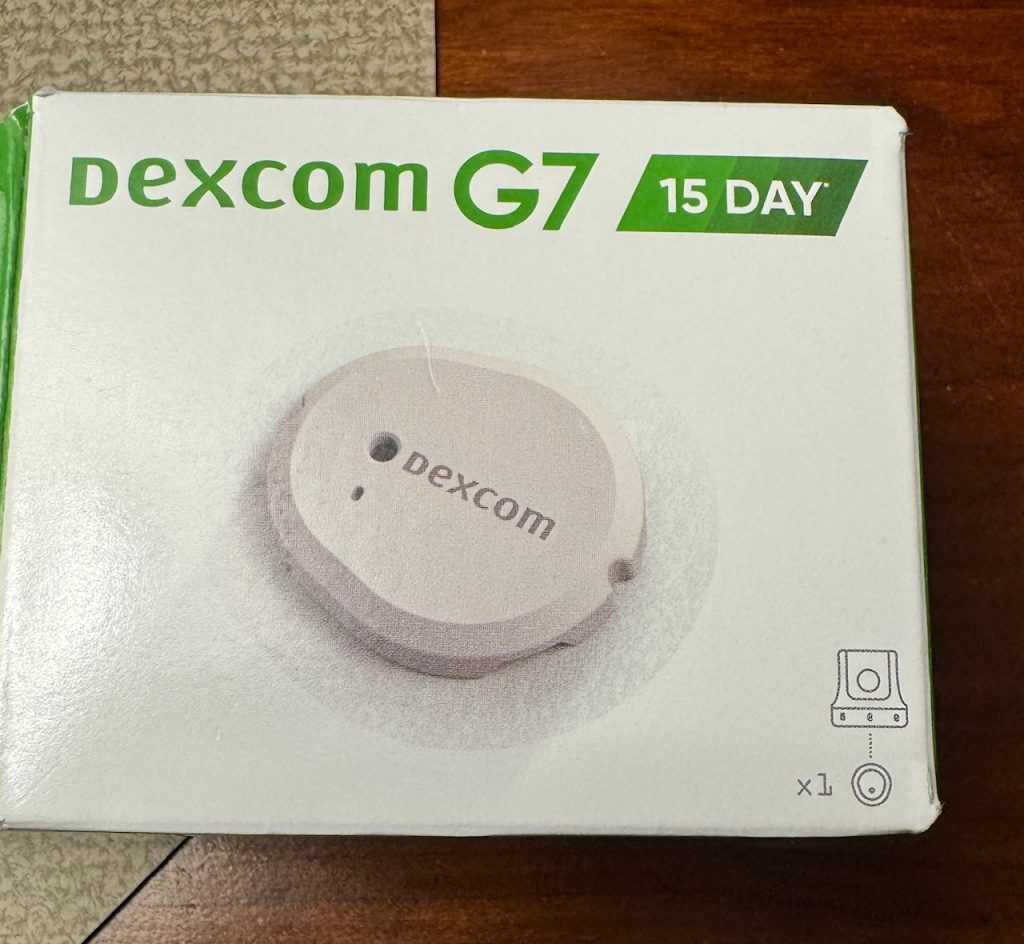 With that as the background, I had my appointment with the specialist. Discussion focused on my choices for the future. Luckily, before insulin, I was going to try a new med (new to me) called Glipizide XL. I was to continue eating the protein/vegetable diet and wear a Continuous Glucose Monitor called Dexcom G7. Here is the box: