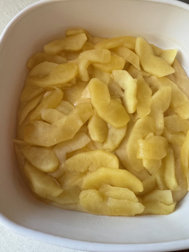 The first step is to prepare the apples. That takes about half an hour, so don’t preheat the oven too soon!