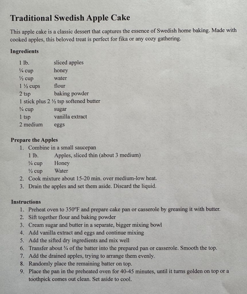 This recipe was described as ‘a classic dessert that captures the essence of Swedish home baking. Made with cooked apples, this beloved treat is perfect for fika or any cozy gathering.’