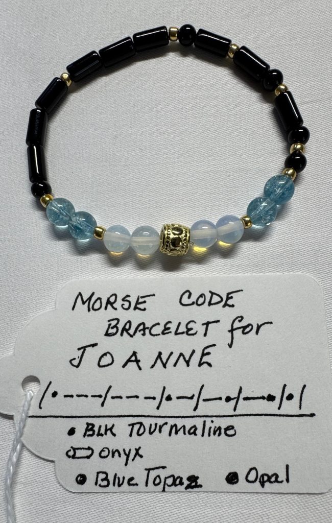 Then I tried bracelets with a person’s name spelled out in Morse Code! At least then I could use some of the beads that I was learning about. That was fun, but once I’d given one to everyone I knew, I still wanted to know more about the stones.