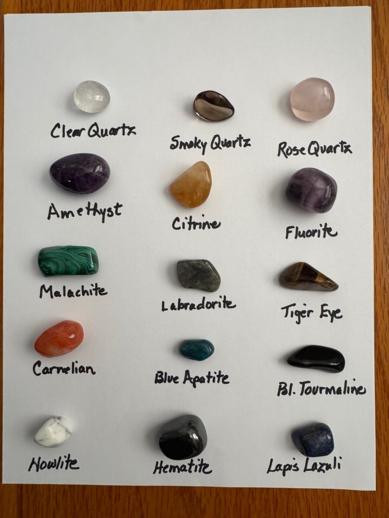 I learned about each stone and usually carried two or three in my pocket every day. Luckily, I was wearing cargo pants with deep pockets so none of the stones got lost!