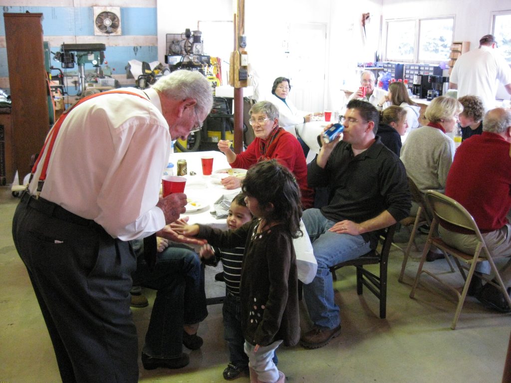 In his later years, after my mother died (1988) and his second wife died (2000), he was able to connect more with his kids, grandkids and great grandkids. For several years, his birthday became the time when we would host a birthday picnic in our shop for as many relatives who could travel to visit. A few pictures from his 95th birthday picnic prompted me to search for as many pictures as I could easily find of him with his kids, grandkids and a few great grandkids. They were good memories for me since it has now been 13 years since he died. How time flies!